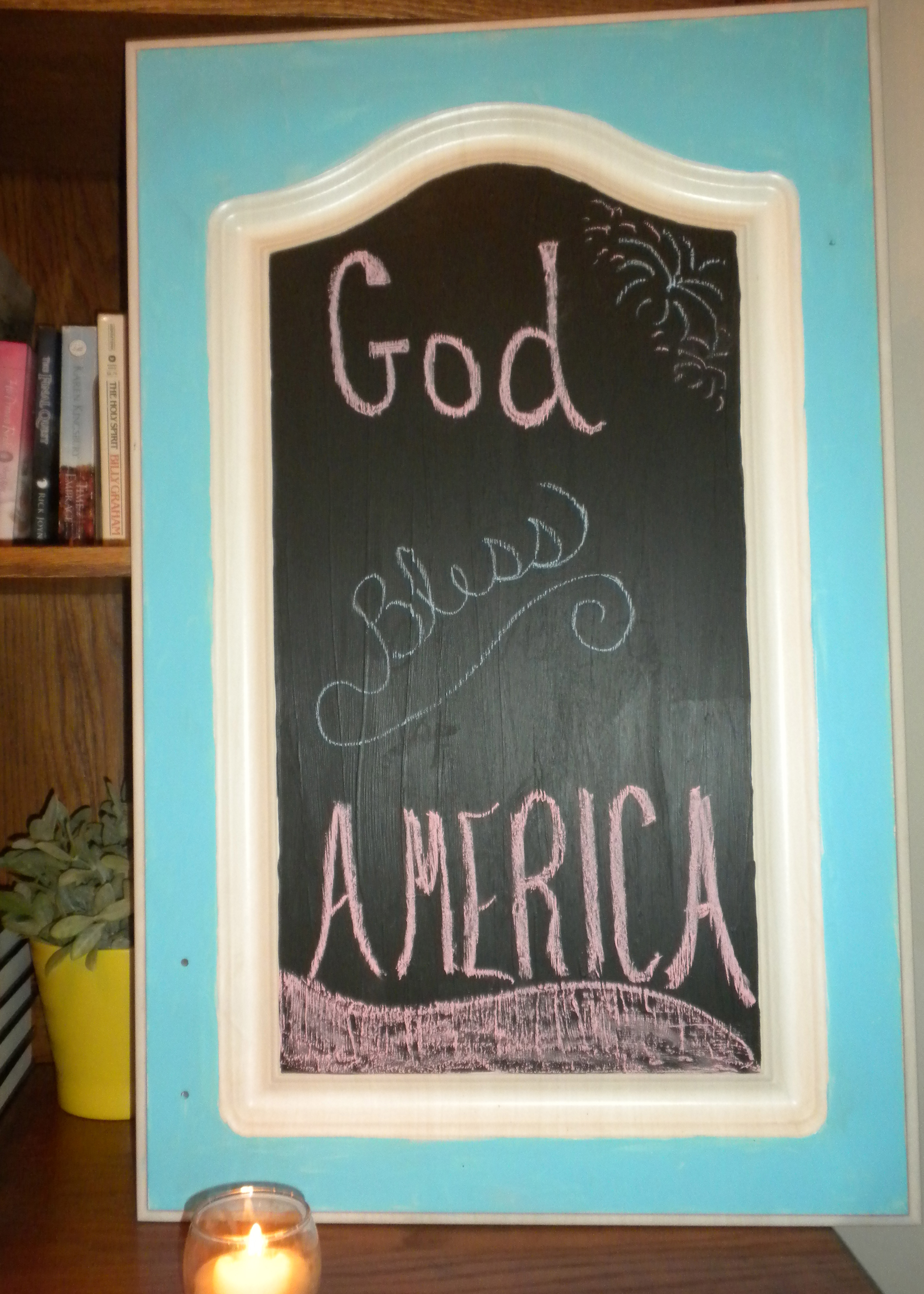 My roommate has this cute chalkboard with a blue frame, so it was really easy to add into the decorations!