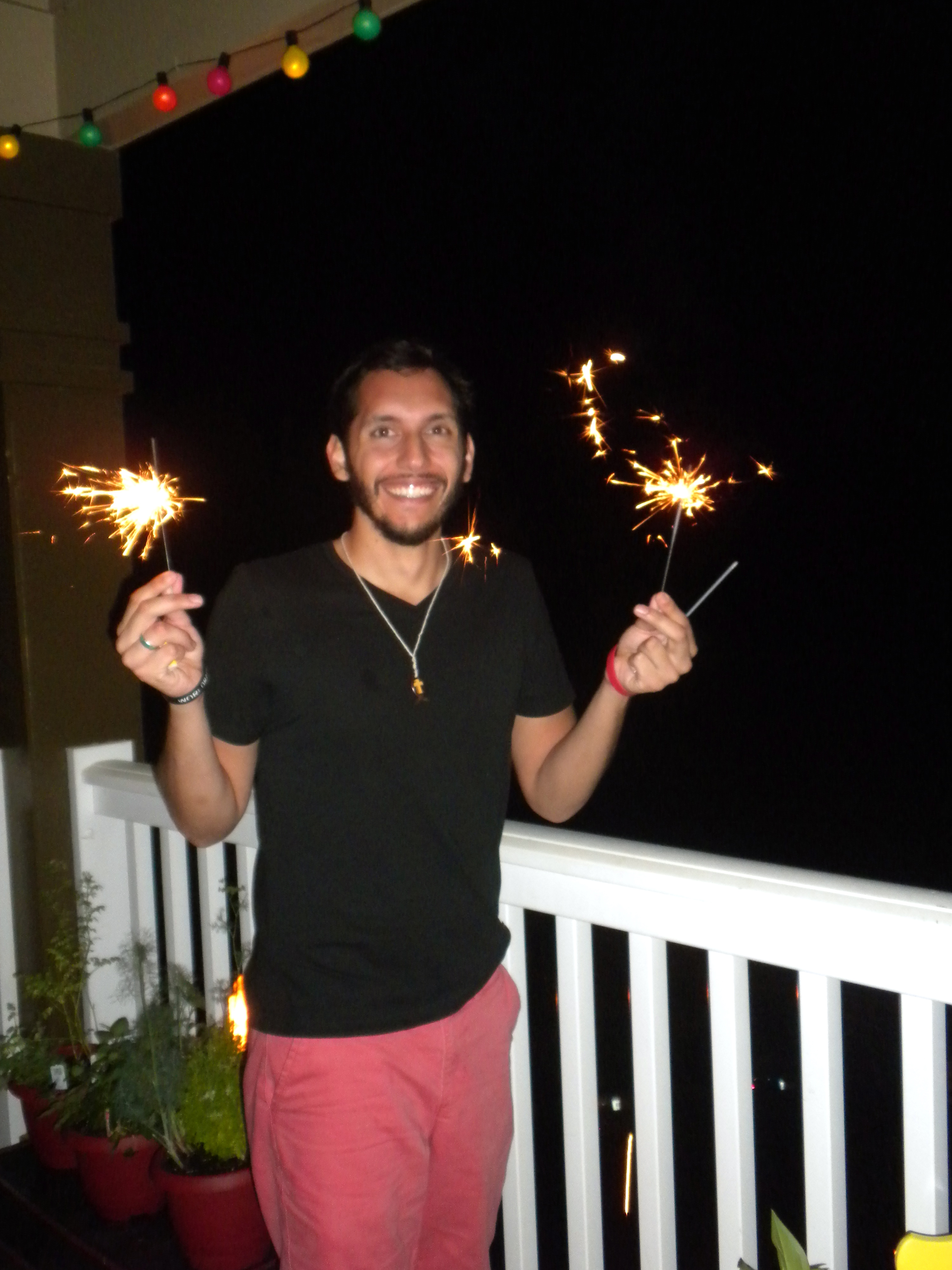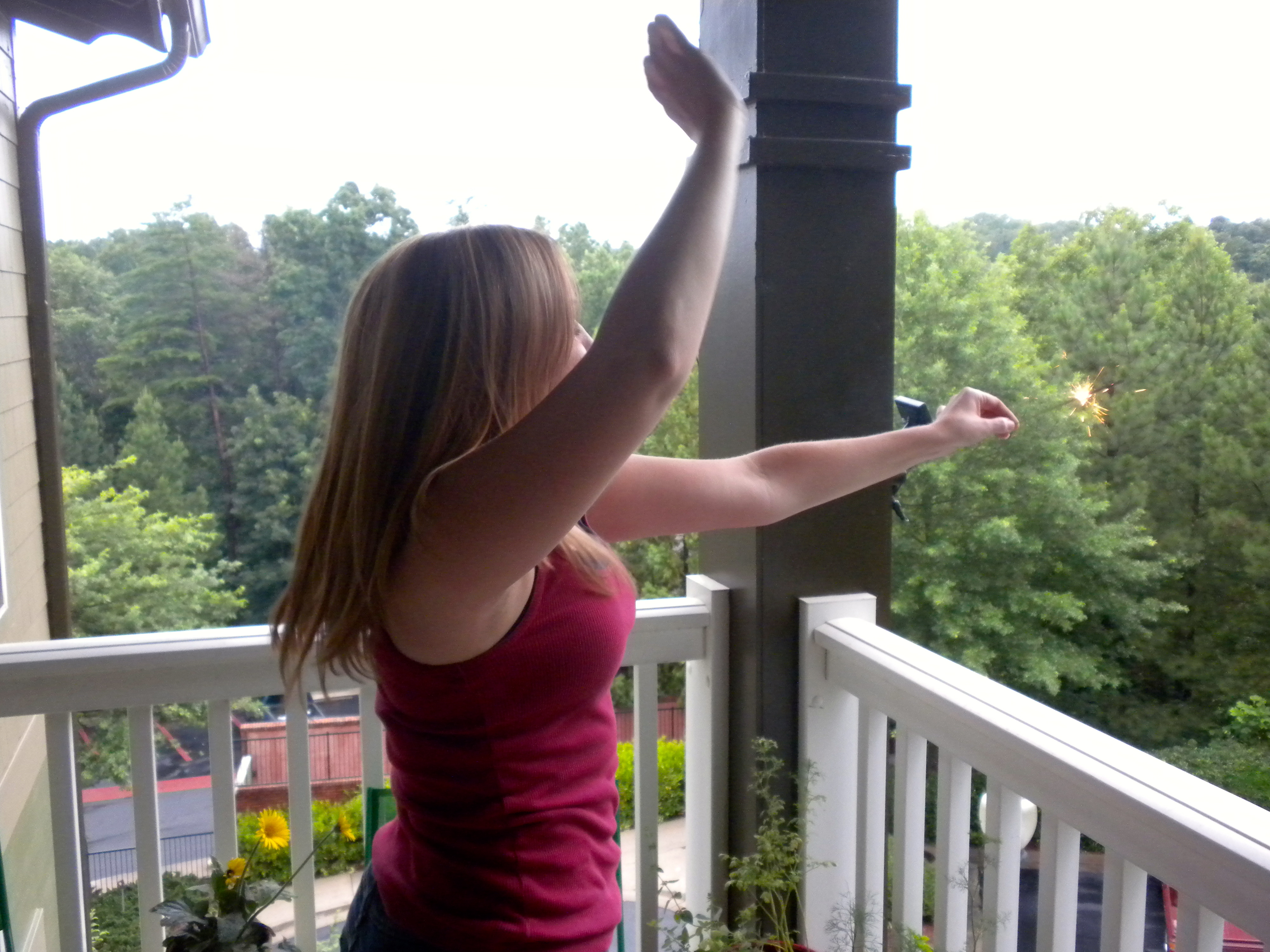 It may have been raining most of the day, but we still lit sparklers! I MAY or may not have been singing “God Bless America” to some of my neighbor kids off the balcony while waving this sparkler. 🙂